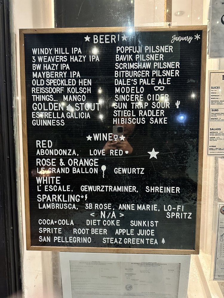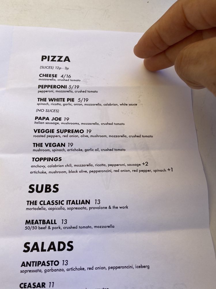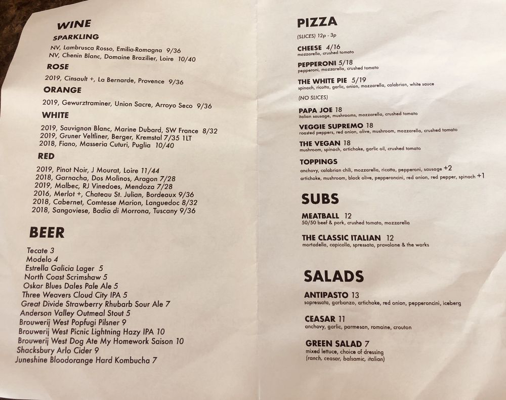 16" pizza, spinach, ricotta, garlic, onion, mozzarella, calabrian chili, white sauce