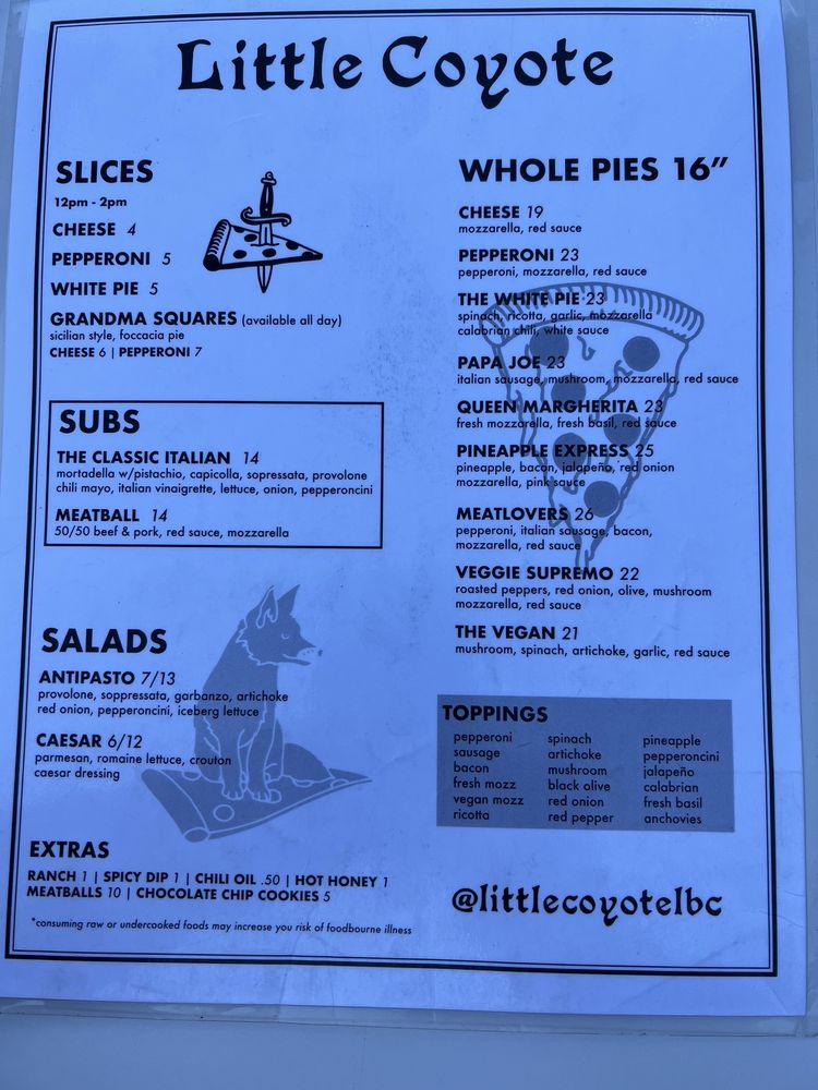 Little Coyote shines with its array of offerings, from their signature meat lovers pizza featuring a harmonious balance of toppings to their delightful antipasto salad that boasts generous portions of quality ingredients. Vegan options ensure that everyone can find something to love. The outdoor seating adds charm, while efficient service and a focus on community enhance the overall experience.